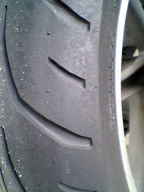 タイヤ替えました(^^)DUNLOP 社製 TT900GP です。 インプレッションは・・・まだまだ(笑) 今日の天候はあいにくの雨。そんなで且つ新品 タイヤじゃ何もできません。 交換に行ったお店は、ジャパンタイヤセンター 箕面店。 小さいお店だけど、スタッフの感じがすごく 良くて、目の前で声出し確認をしながら交換 作業をしている姿は、ものすごく真剣に取り 組んでいることが感じられました。 これなら、安心して作業を任せられます(^^) 作業自体は、前後のタイヤ交換、バルブ交換、 アクスルシャフトのグリスアップやブレーキ、チェーンなどの点検作業まで 行って、小1時間。 最後には、メインで作業した人間とは違う人間がチェックシートに従って 再度声出し点検確認。 いや~、いい仕事してます(笑) 交換が気持ちよく行えたのはいいのですが、帰りはワックスがついた新品 タイヤ+雨+ぬれた路面で、免許を取り立ての女の子バリに、こわごわと 帰ってきました。 さ~て、まずは皮むきだ。 |