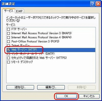 6. 「 Web サーバー(HTTP) 」 にチェックがついたことを確認して、[OK] をクリックする。