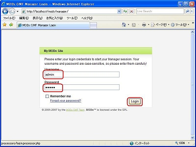 Internet Explorer などのブラウザソフトで phpMyAdmin を設置したフォルダにアクセスする。
