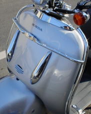 正面から見ると肩にプロテクターを付けた戦士のような結構な迫力で、ちょっと見は 50cc/90cc には見えないと思います。