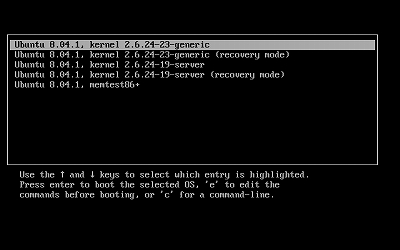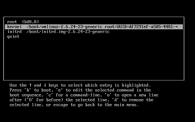 kernel /boot/vmlinuz-2.6.24-19-server ~~~~~ ro single